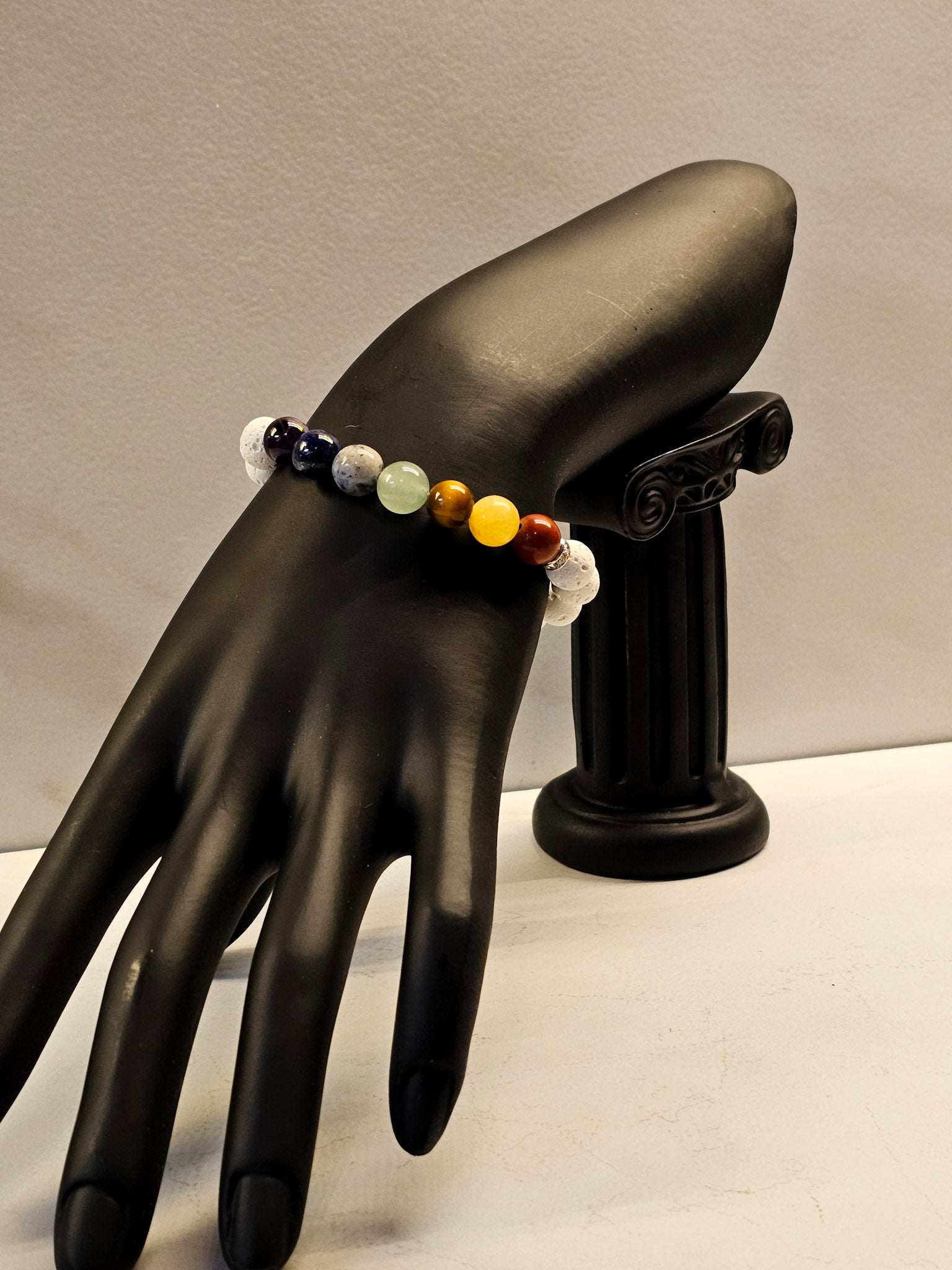 Bring balance, harmony, and style to your everyday look with this beautiful Chakra Lava Stone Bracelet. Featuring seven natural gemstone beads representing the seven chakras, this bracelet is designed to support mindfulness, grounding, and positive energy.