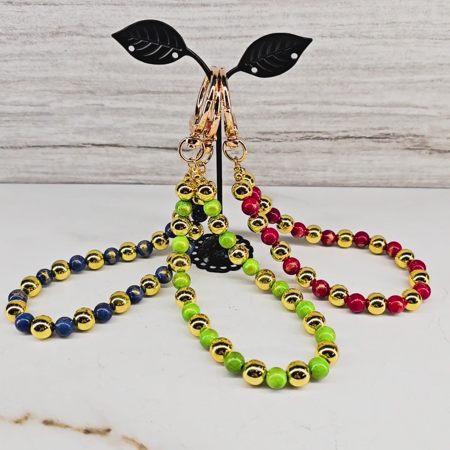 - Available in Blue, Green, or Red beaded designs