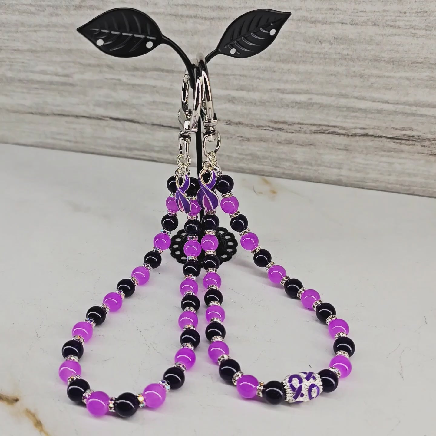 This meaningful beaded wristlet keychain is designed to honor those impacted by conditions represented by the purple awareness ribbon — including Lupus, Fibromyalgia, Epilepsy, Crohn’s Disease, Alzheimer’s Disease, and more.