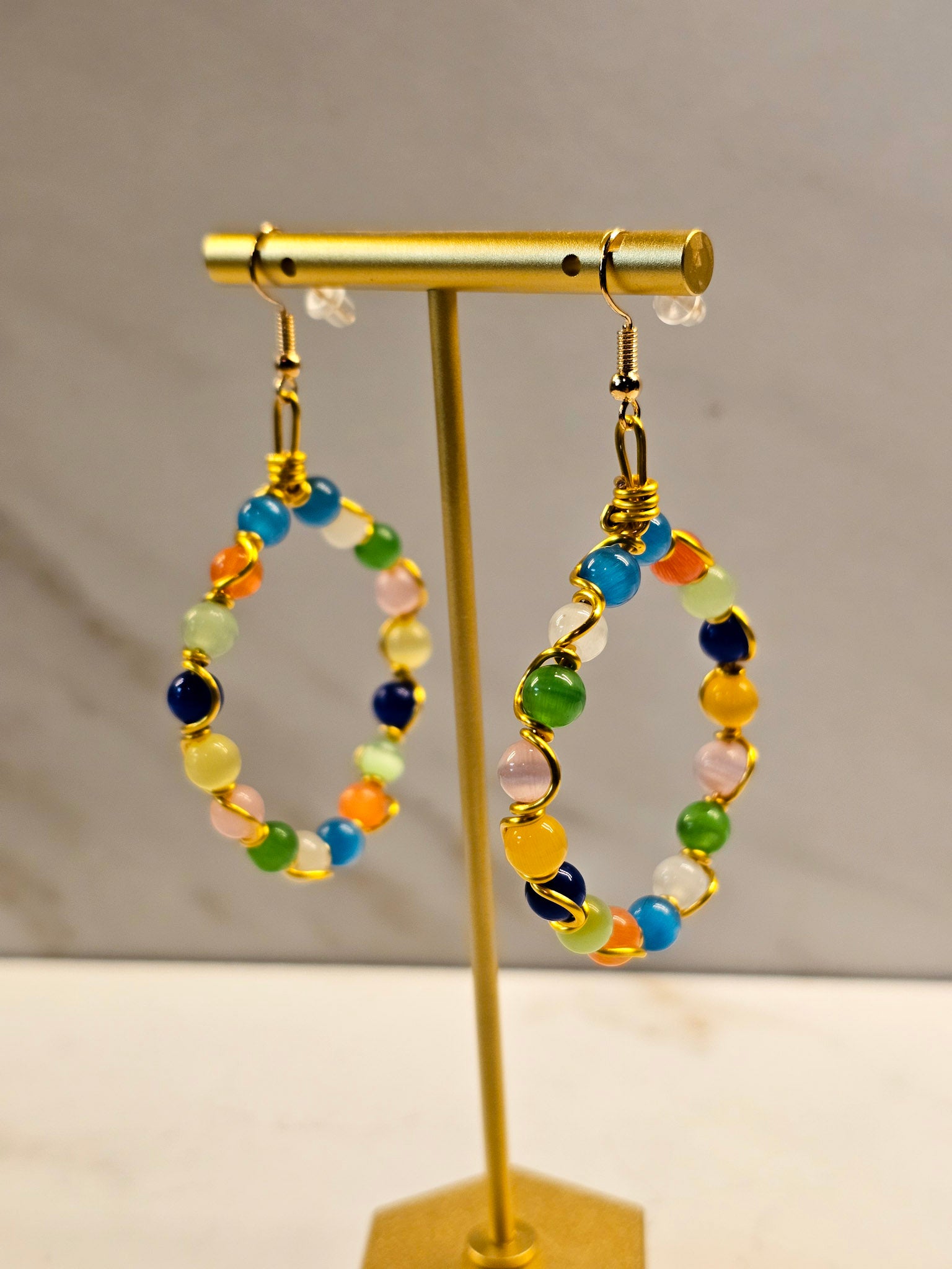 - Materials: Cat’s eye glass beads, gold-tone metal
