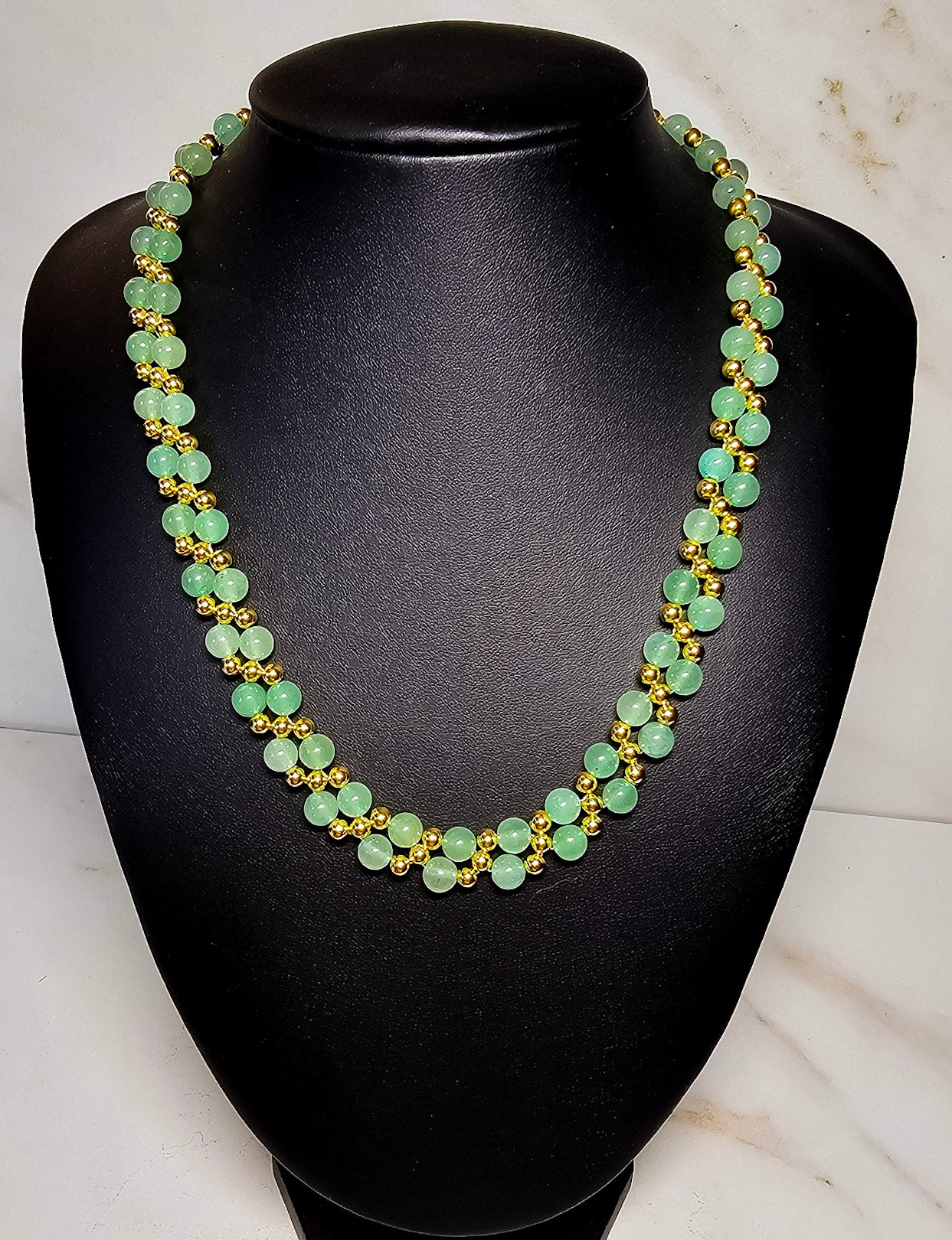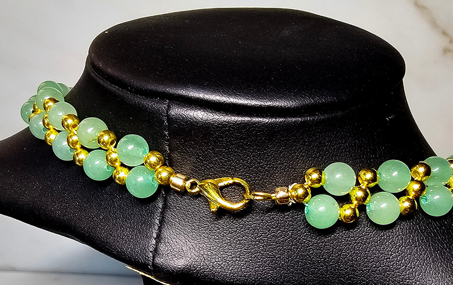 Soft green aventurine beads pair beautifully with golden accents in this fresh and airy necklace, finished with polished gold hardware for just the right sparkle. At 16 inches, it’s a versatile piece that adds a touch of nature-inspired charm to any outfit.