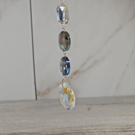 Handcrafted to capture the gentle movement of light, this piece features sparkling glass crystals that shimmer with every shift of the sun. The warm gold-tone accents create a harmonious flow, making this suncatcher a calming, luminous addition to any room.